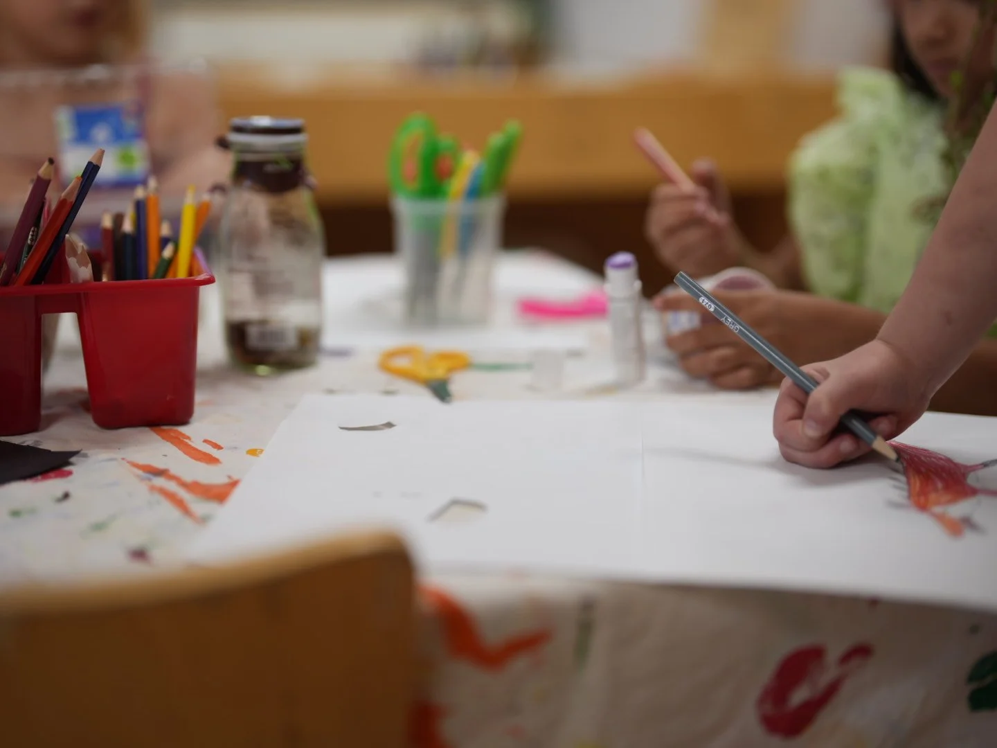 Pre-literacy skills including recognizing and printing upper and lowercase letters, while early numeracy is developed through counting, sorting, and calendar activities. Students also engage in music, movement, and field trips to extend learning beyond the classroom and deepen cultural and linguistic exposure.